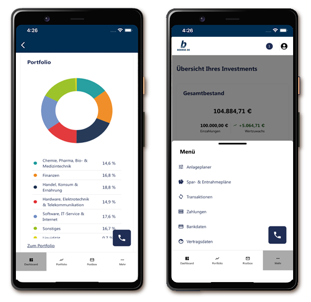 Alle Transaktionen und die Entwicklung des Depots sind über den Online-Zugang oder über die boerse.de-Depot-App jederzeit einsehbar. Außerdem erhalten Sie ein vierteljährliches Reporting.