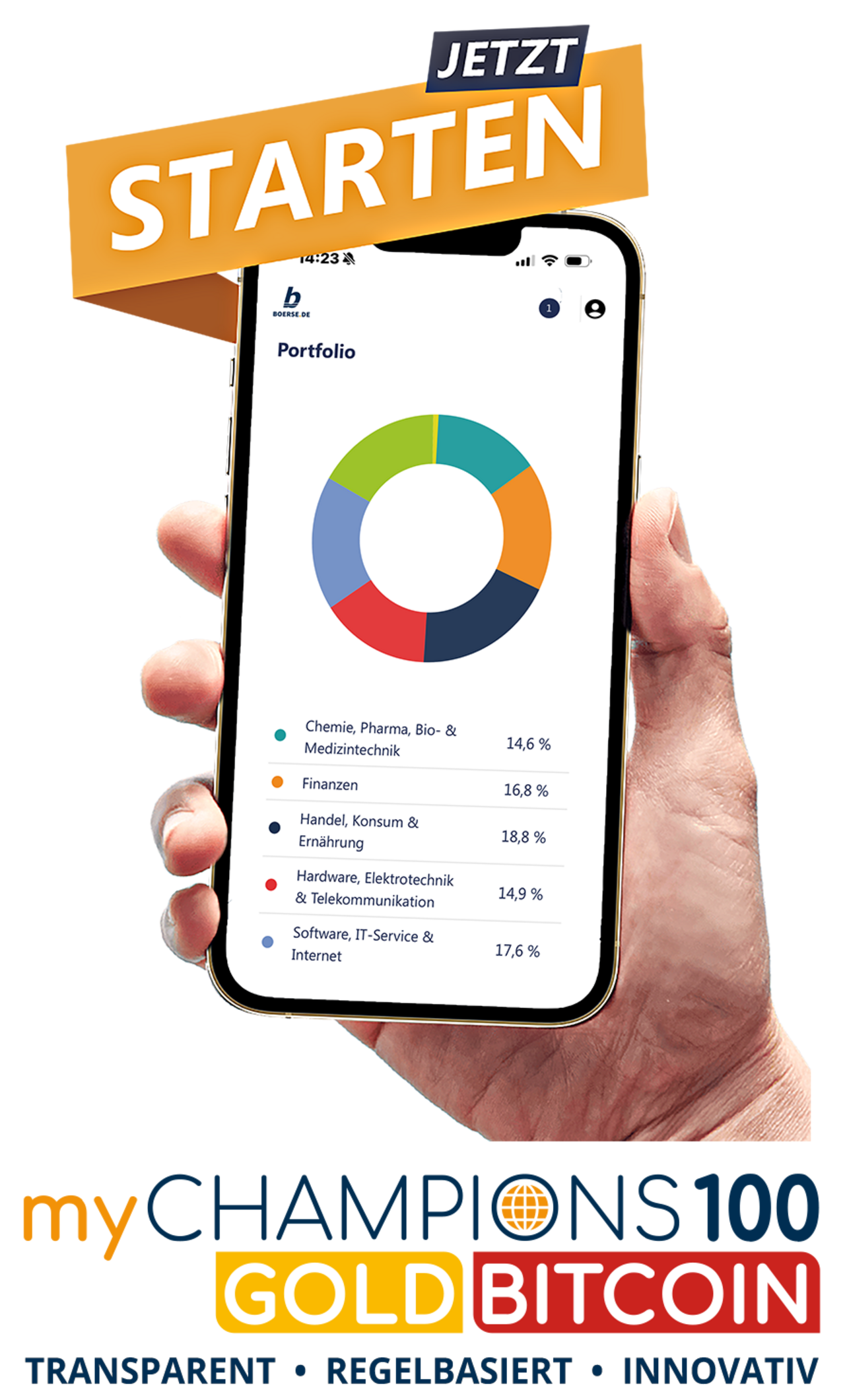 myChampions100GOLD-BITCOIN investiert in Champions aus dem boerse.de-Aktienbrief, die laut Performance-Analyse langfristig erfolgreichsten und sichersten Aktien der Welt sind, sowie in Gold und den Bitcoin.
